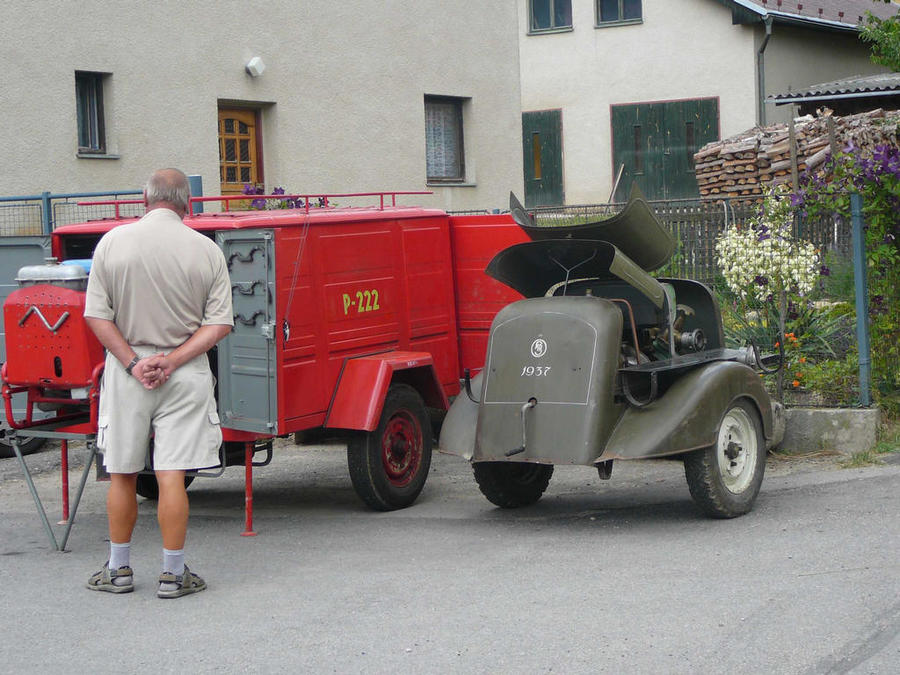 Hasičský záchranný sbor z Českého Krumlova ukázal účastníkům oslav také historickou požární techniku - např. požární stříkačky.