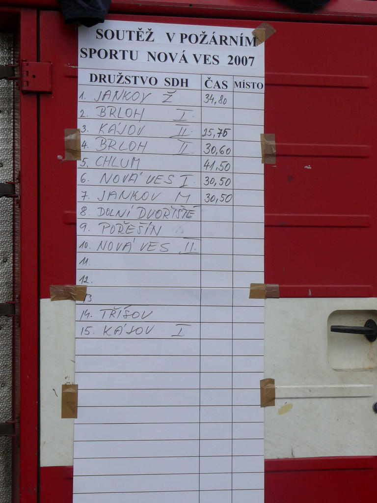 Po skončení soutěže družstev v požárním sportu a úspěšném předvedení amatérské hasičské záchranné akce se konalo předávání cen nejlepším družstvům. Ceny předával starosta SDH Nová Ves František Bauer, dále Jan Hüttner a Jan Borovka .