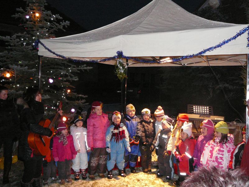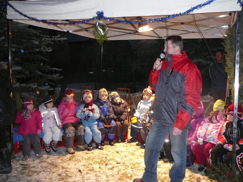 Děti z Mateřské školy v Nové Vsi měly připraven velmi krásný program. Jejich vystoupení navodilo příjemnou adventní atmosféru. Děti byly odměněny nejen velkým potleskem, ale také sladkostmi a dárkem (kniha na čtení ve školce a adventní věnec na vchodové dveře). Pro děti byl také připraven zdarma vánoční punč.