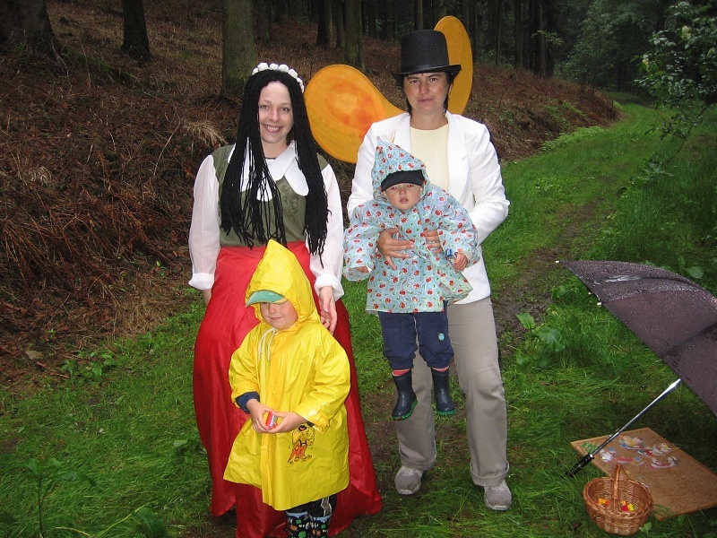 I přes nepřízeň počasí se po procházce pohádkovým lesem a splněním všech úkolů opékaly špekáčky, děti si vyprávěly zážitky ... :