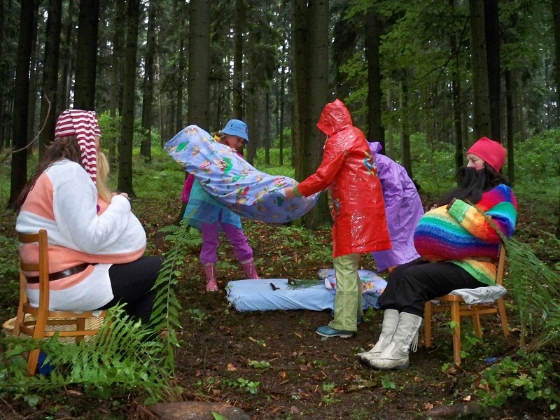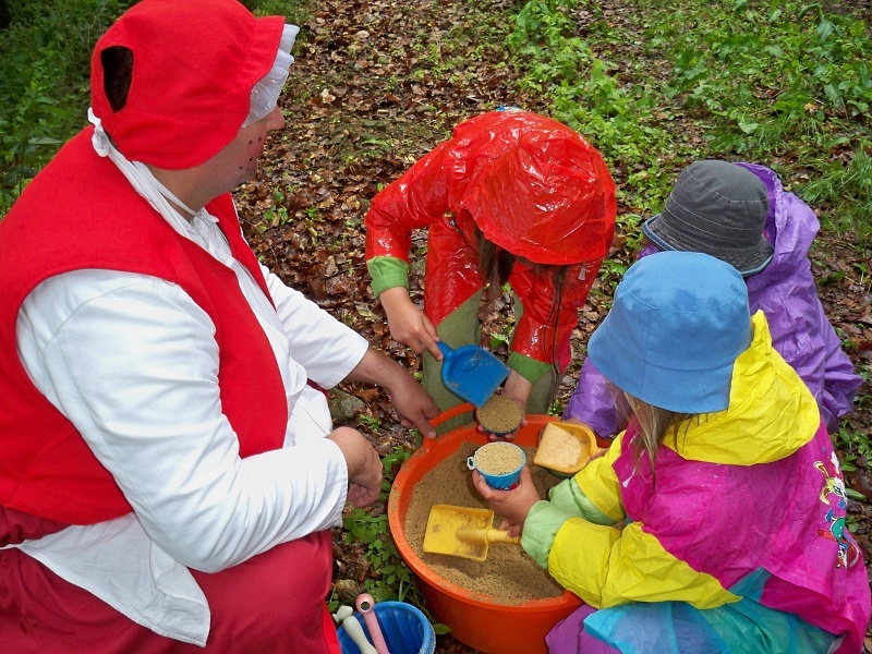 V pohádkovém lese byla i Červená Karkulka, které děti dělaly bábovku pro babičku: