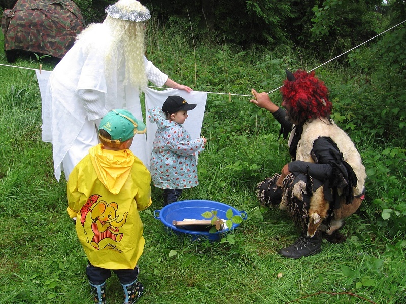 Čert s andělem potřebovali pomoct s praním obláčků, dobře vyprané a čisté obláčky byly pro pěkné počasí, špatně vyprané by přinesly déšť a bouřky: