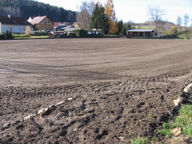 Od října 2008 probíhá rekonstrukce trávníku fotbalového hřiště - viz foto: